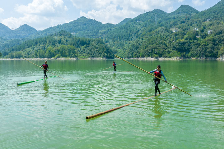 别具一格的民族传统体育项目充满了生活智慧和乐趣。“独竹漂”高手仅凭一根细长的竹竿,就能在水面上翩翩起舞;“高脚竞速”的比赛用具源自土家族、苗族群众在雨季代步或涉水过浅河的工具,赛场上运动员们双手各持一杆,“同手同脚”奔跑,上演“速度与激情”;民族健身操融合了多民族舞蹈动作,把民族舞蹈的柔美与健身操的力度相结合,实现了传统民族文化与现代健身运动的完美融合。